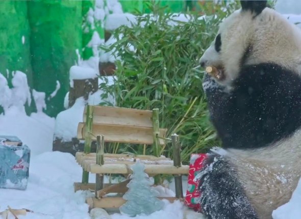 Панда Катюша впервые катается на санках: трогательные кадры из Московского зоопарка. Фото: кадр из социальных сетей Московского зоопарка