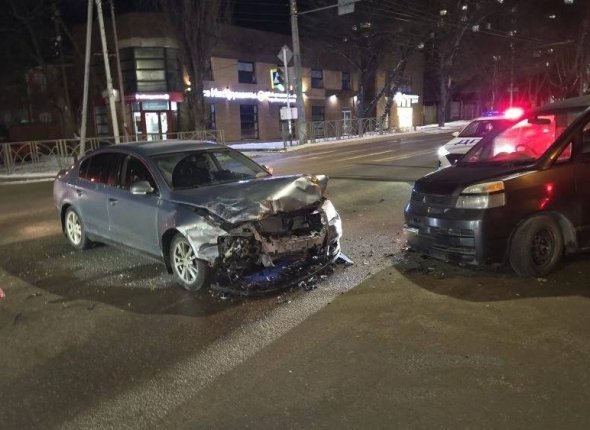 По предварительным данным, Volkswagen и Toyota столкнулись на регулируемом пересечении улиц Мира и пер. Чкалова.