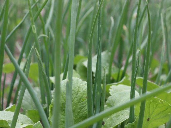 При выращивании в грунте лук можно подкармливать раз в две недели — например, настоем золы. Срезать перья лучше начинать с крайних, оставляя центральные для дальнейшего роста. Так одна луковица будет кормить семью несколько недель.
