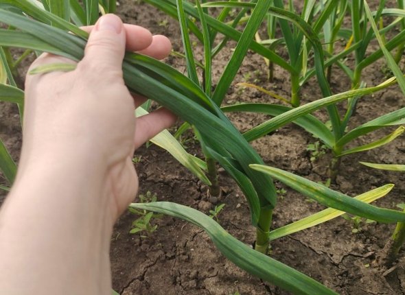 Когда на чесноке распустится 3–4 настоящих листочка, пора вносить азот. В это время растение наращивает листья. И тут работает простое правило: чем мощнее перо, тем крупнее вырастет головка.