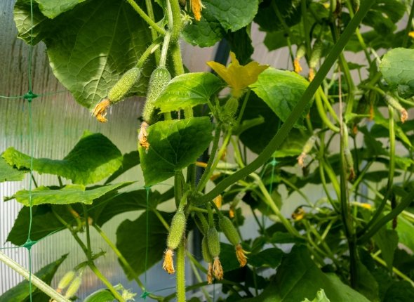 Чтобы защитить огурцы от вредителей, после высадки рассады на постоянное место, нужно 1 раз в 10 дней опрыскивать растения раствором фитоверма. Чтобы завязи не опадали, необходимо 1 раз в 2 недели поливать огурцы раствором монокалий фосфата из расчета 2 грамма на 1 литр воды курсом 2 раза.