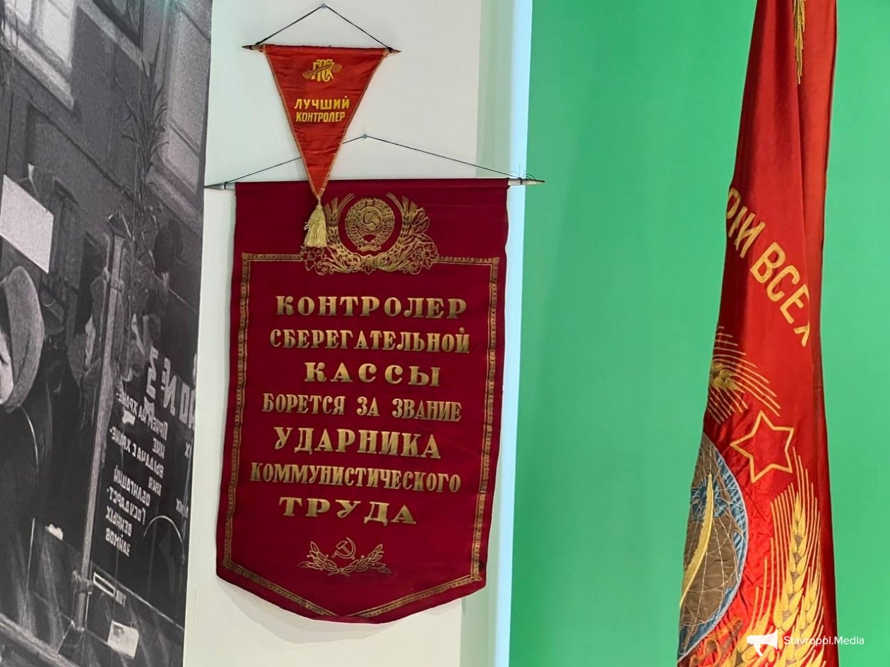 В музее сохранились вымпелы и флаги лучших сберкасс, которые раньше других выполняли планы. В те годы расширялся и функционал: появились денежно-вещевые лотереи. Среди лидеров социалистических соревнований был и коллектив сберкассы в Невинномысске.