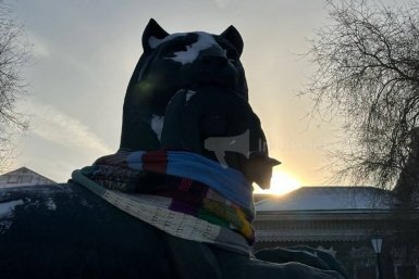 Полиция не дала подрядчикам забрать шарф-рекордсмен у памятника Бабру в Иркутске