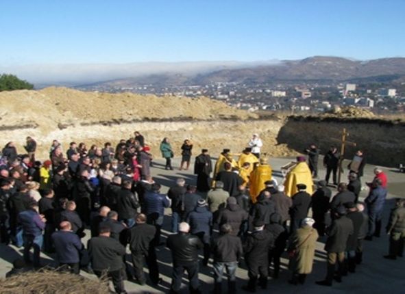 Глава Кисловодска Александр Курбатов заложил краеугольный камень в основание нового храма, 2016г.